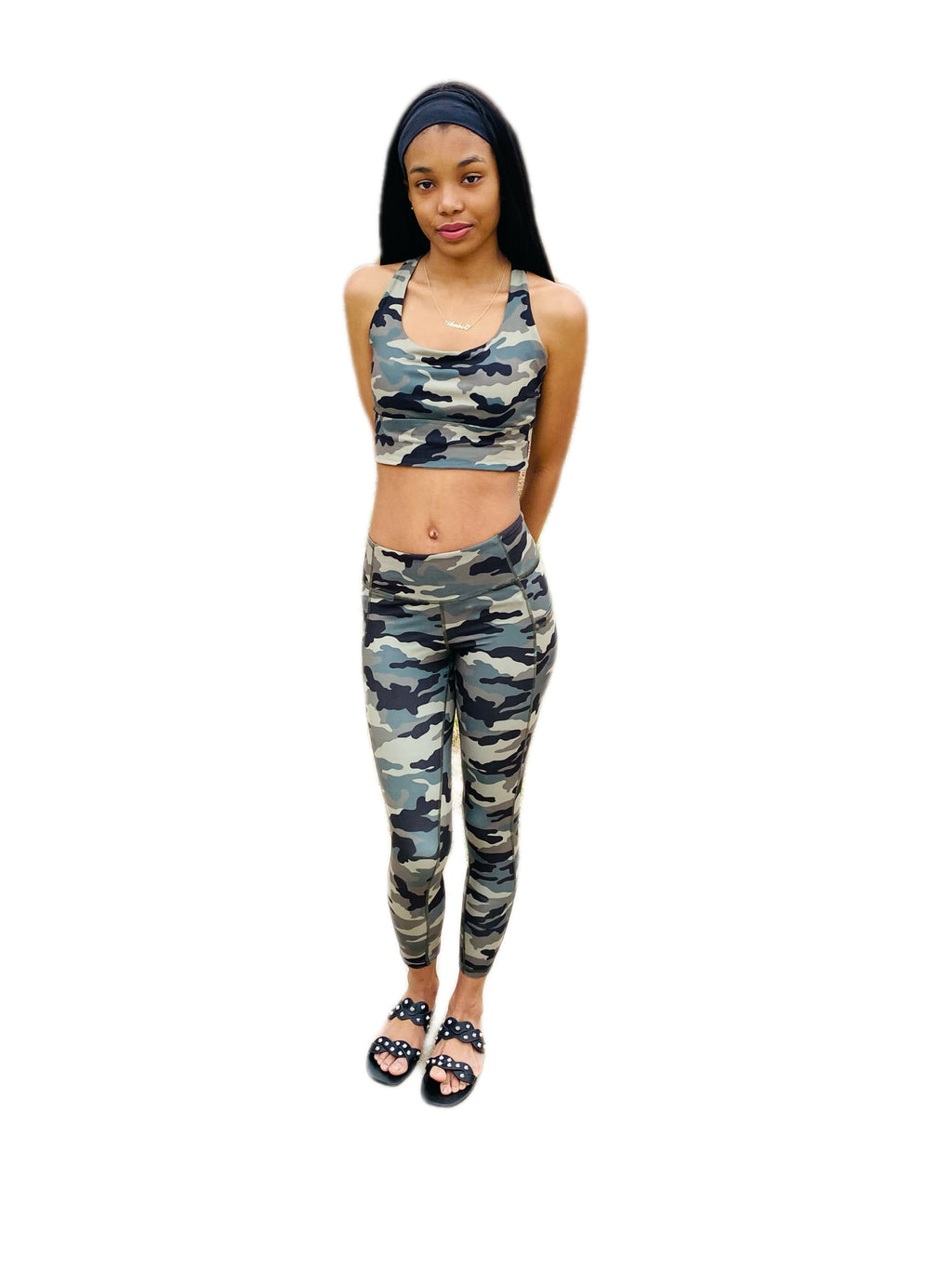 Camouflage Strappy Criss Cross Back Padded Sports Bra