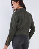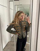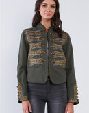 Cotton Buttoned Steampunk Structured Hussar Inspired Glam Jacket - Olive and Gold