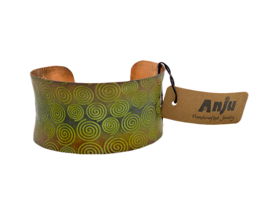 Patina Brass and copper bracelet green. Handcrafted from brass and copper wire and soldered with a patina finish. Lacquer is added to keep it from tarnishing.