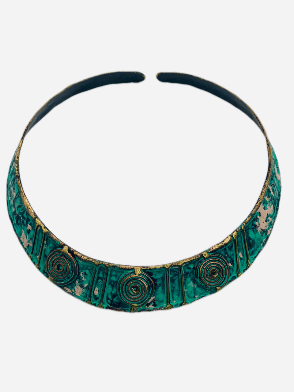 Patina Brass and copper choker colors blue/green and peach. Handcrafted from brass and copper wire and soldered with a patina finish.