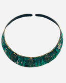 Patina Brass and copper choker colors blue/green and peach. Handcrafted from brass and copper wire and soldered with a patina finish.