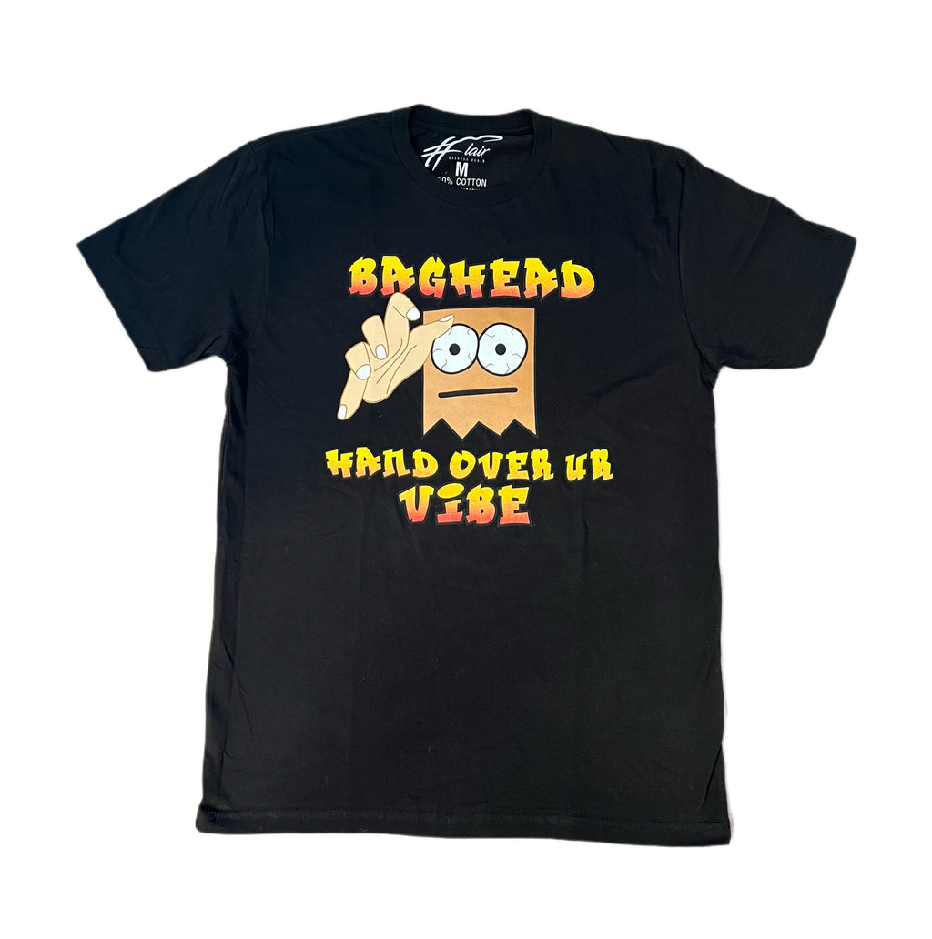 Support an upcoming young artist pictured in photo. Snag you a one of a kind Baghead T-shirt. One of his many characters. Look out for more of his art to come!